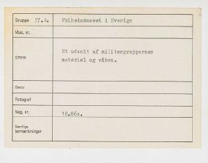 Maskingenkendt tekst fra fotokuvert: Et udsnit af militærgruppernes materiel og våben.