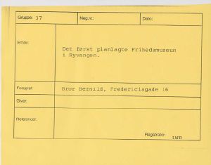 Maskingenkendt tekst fra fotokuvert: Det først planlagte Frihedsmuseum i Ryvangen.