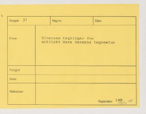 Maskingenkendt tekst fra fotokuvert: Diversee tegninger fra arkitekt Hans Hansens tegnestue