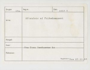 Maskingenkendt tekst fra fotokuvert: Aftenfoto af Frihedsmuseet