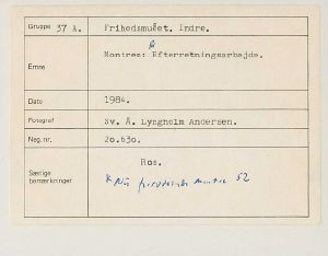 Maskingenkendt tekst fra fotokuvert: Montren Efterretningsarbejde.