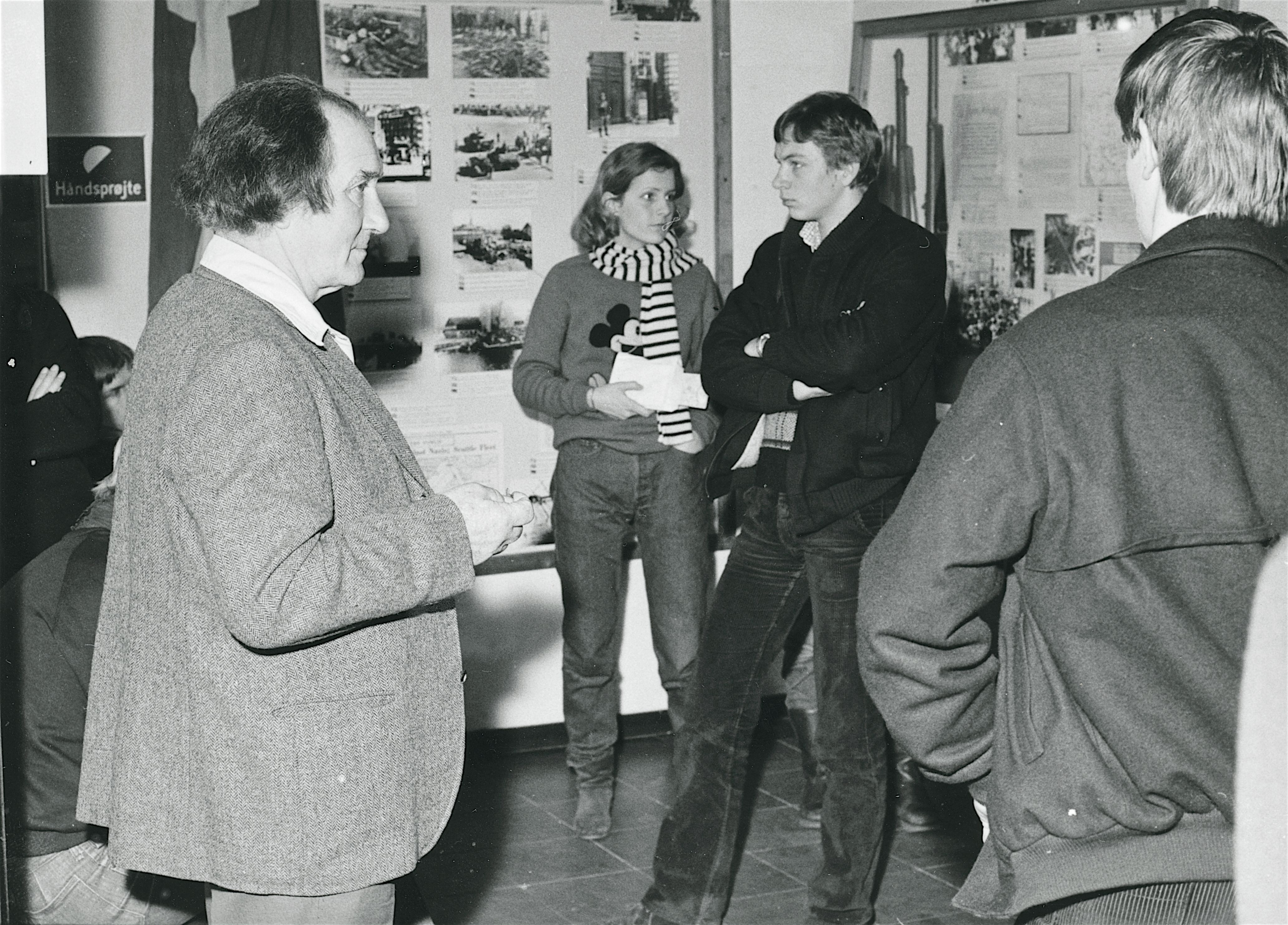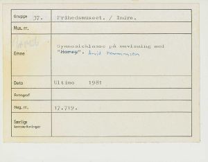 Maskingenkendt tekst fra fotokuvert: Gymnasieklasse på omvisning