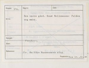 Maskingenkendt tekst fra fotokuvert: Den indre gård. Knud Nellemoses Falden ung mand.