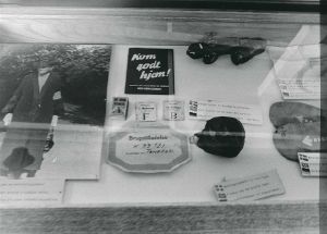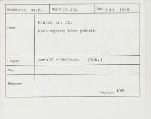 Maskingenkendt tekst fra fotokuvert: Montre nr. 12. Mørklægning blev påbudt.