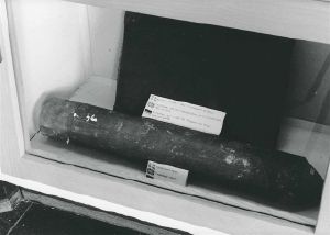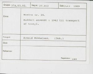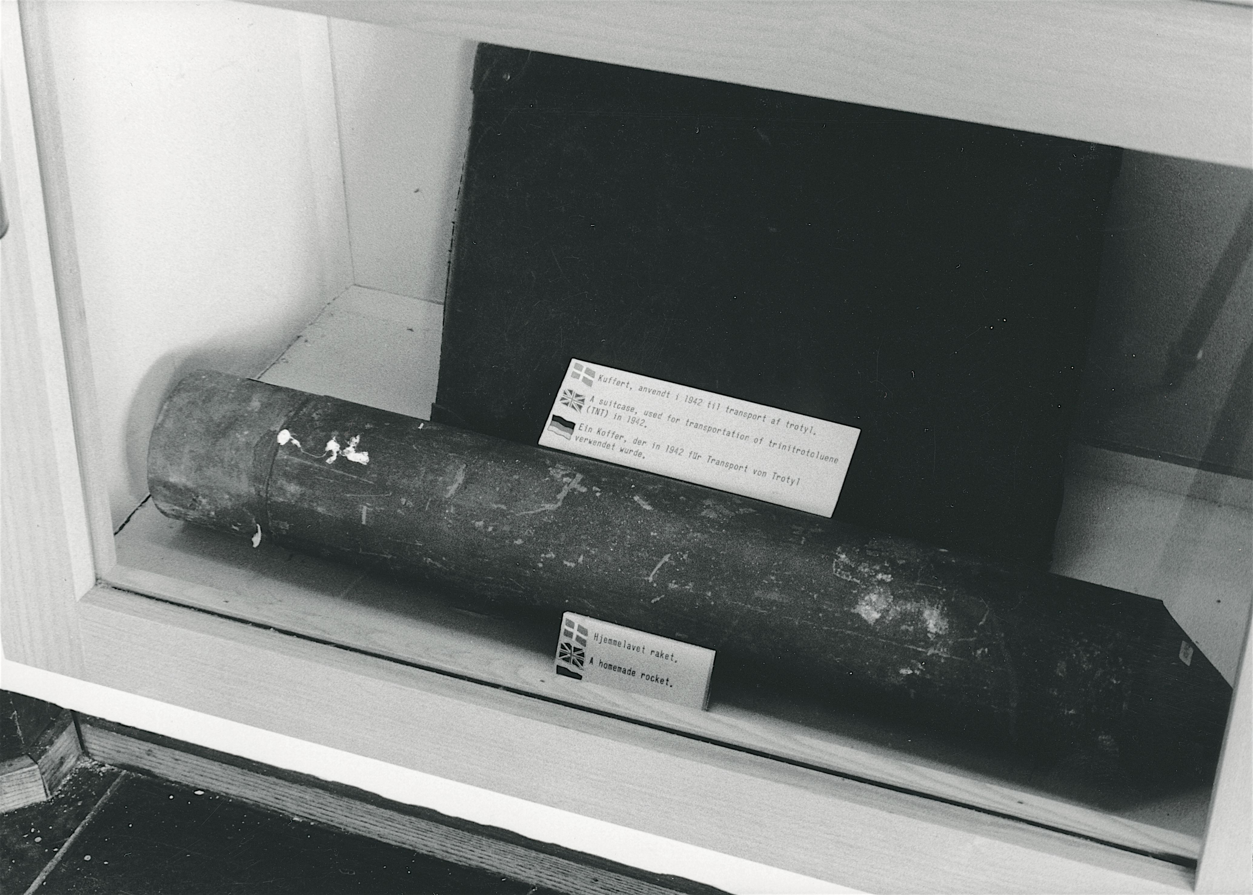 Maskingenkendt tekst fra fotokuvert: Montre nr. 25. Kuffert anvendt i 1942 til transport af trotyl.