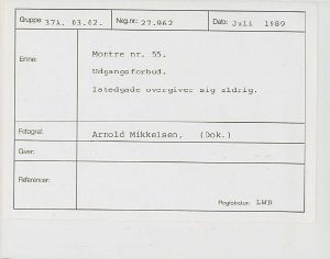 Maskingenkendt tekst fra fotokuvert: Montre nr. 55. Udgangsforbud. Istedgade overgiver sig aldrig.