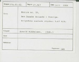 Maskingenkendt tekst fra fotokuvert: Montre nr. 59. Den Danske Brigade i Sverige. Brigadens samlede styrke