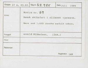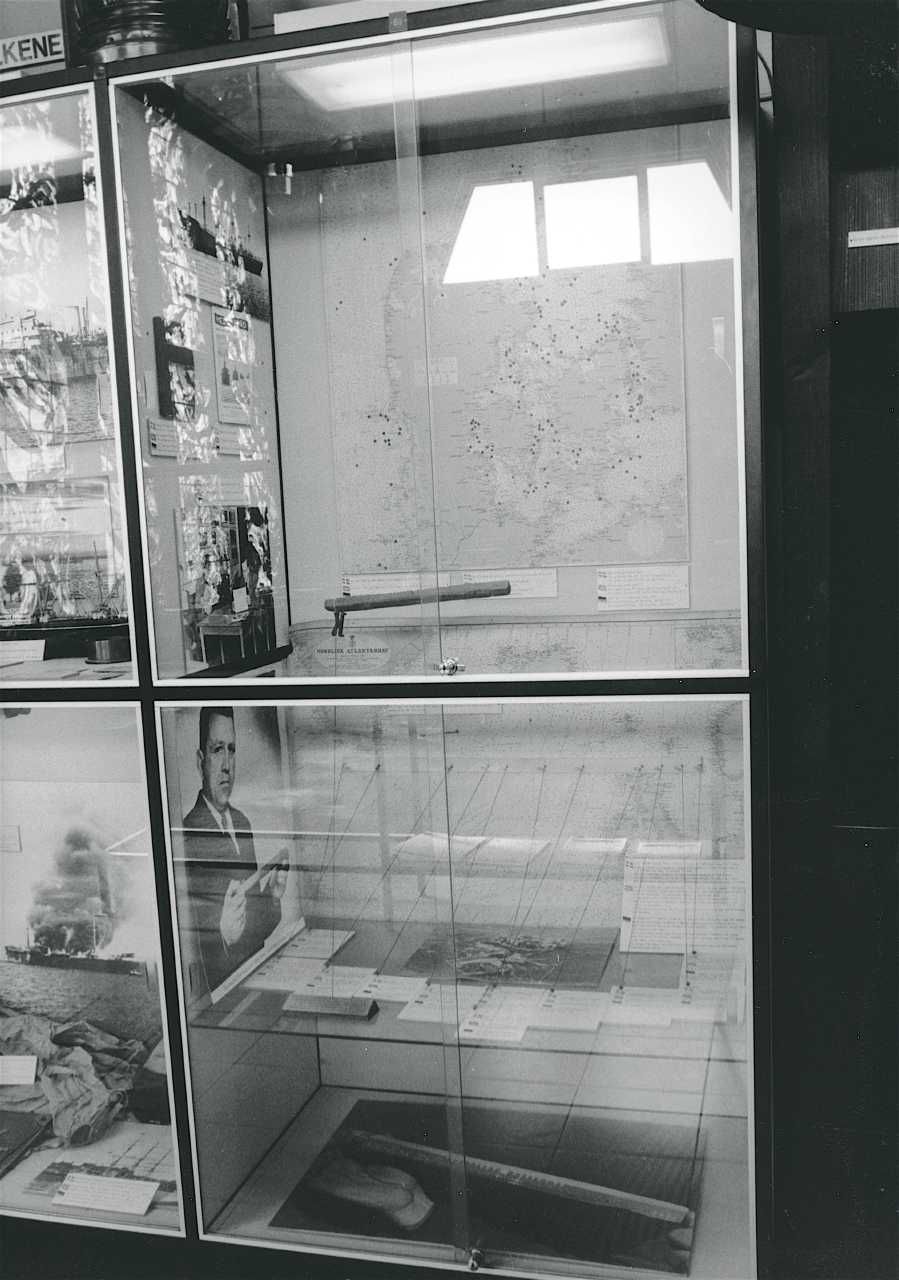 Maskingenkendt tekst fra fotokuvert: Montre nr. 69. Dansk skibsfart i allieret tjeneste. Mere end 1.600 danske søfolk omkom.