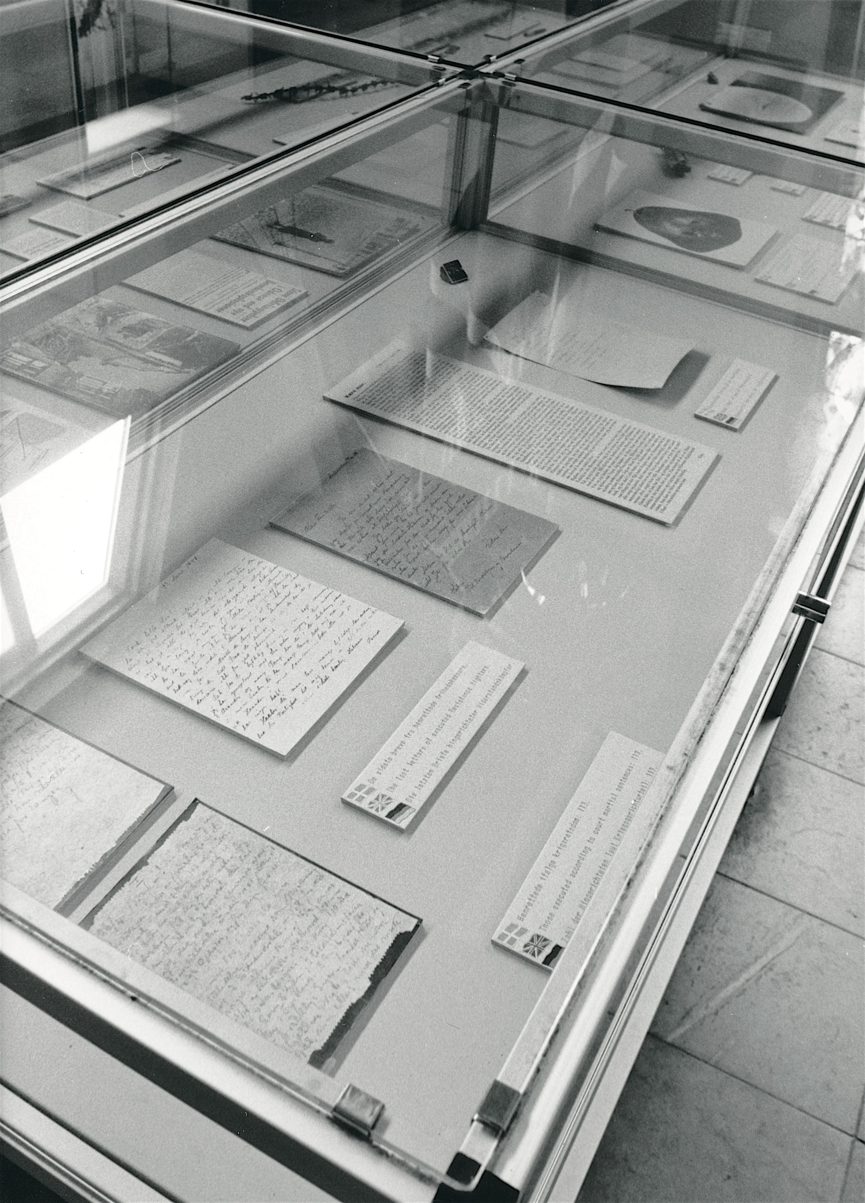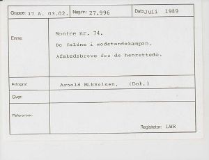 Maskingenkendt tekst fra fotokuvert: Montre nr. 74. De faldne i modstandskampen. Afskedsbreve fra de henrettede.