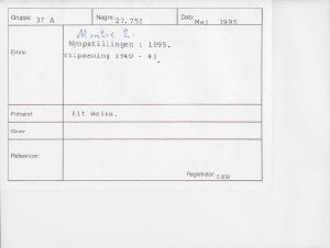 Maskingenkendt tekst fra fotokuvert: Nyopstillingen i 1995. Tilpasning 1940 - 41