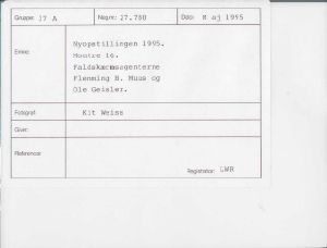 Maskingenkendt tekst fra fotokuvert: Nyopstillingen 1995. Montre 16. Faldskærmsagenterne Flemming B. Muus og Ole Geisler.