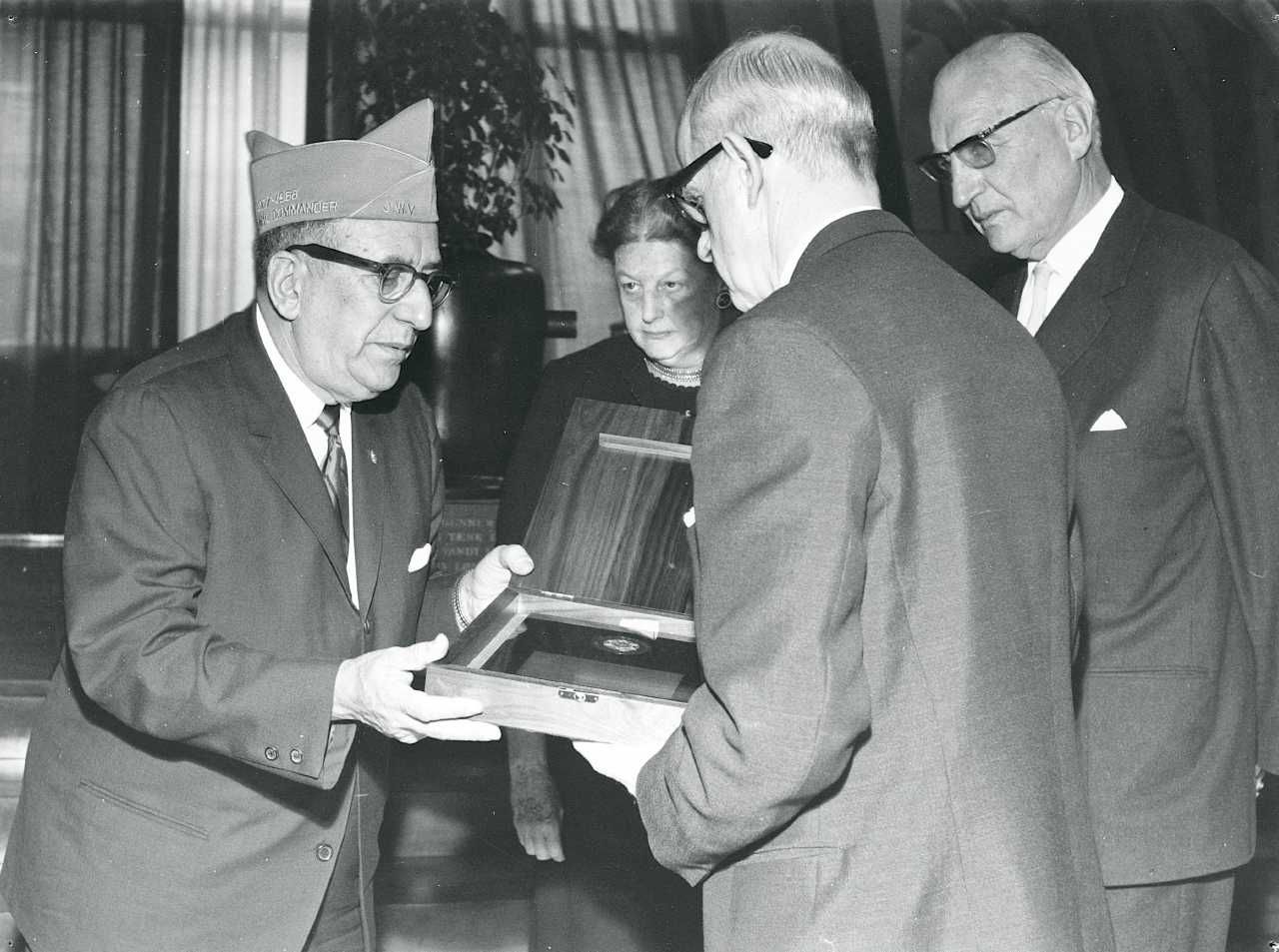 Maskingenkendt tekst fra fotokuvert: Overrækkelse af amerikansk-jødisk æresbevis.