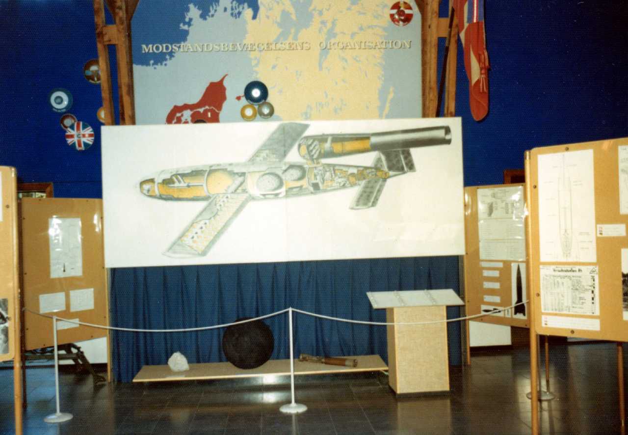 Maskingenkendt tekst fra fotokuvert: Frihedsmuseets udstilling om de tyske V-våben.
