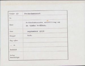 Maskingenkendt tekst fra fotokuvert: Frihedsmuseets udstilling om de tyske v-våben.
