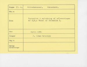 Maskingenkendt tekst fra fotokuvert: Reception i anledning af afleveringen af Ø.K.s Model af Selandia 2.