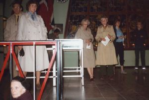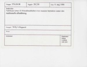 Maskingenkendt tekst fra fotokuvert: Publikum lytter til frihedsbudskabet over museets højttalere under den traditionelle aftenåbning.