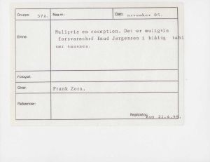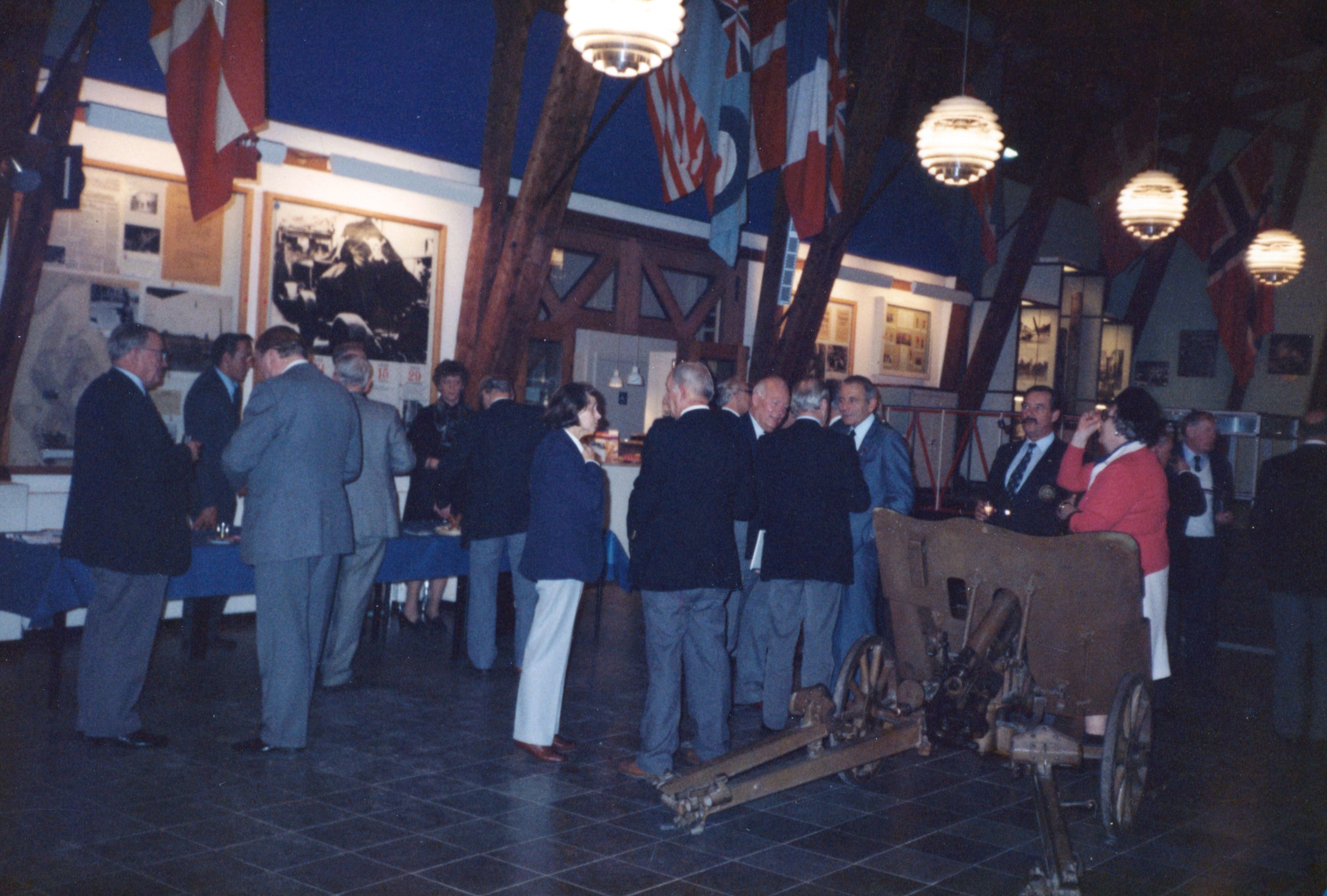 Maskingenkendt tekst fra fotokuvert: Muligvis en reception. Det er muligvis forsvarschef Knud Jørgensen i blålig habit nær kanonen.