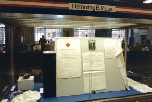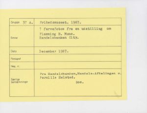 Maskingenkendt tekst fra fotokuvert: En udstilling om Flemming B. Muus. Handelsbanken City.