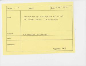 Maskingenkendt tekst fra fotokuvert: Reception og modtagelse af en af de hvide busser fra Sverige.