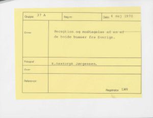 Maskingenkendt tekst fra fotokuvert: Reception og modtagelse af en af de hvide busser fra Sverige.