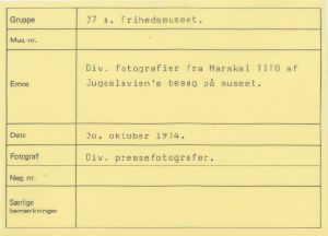 Maskingenkendt tekst fra fotokuvert: Div. fotografier fra Marskal TITO af Jugoslavien s besøg på museet.