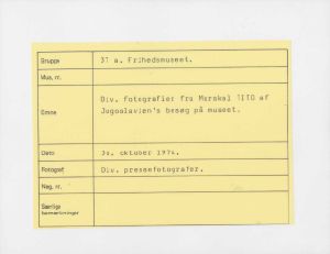 Maskingenkendt tekst fra fotokuvert: Div. fotografier fra Marskal TITO af Jugoslavien s besøg på museet.