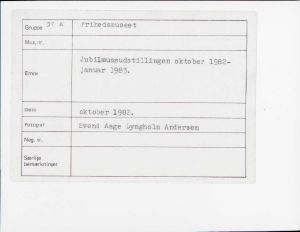 Maskingenkendt tekst fra fotokuvert: Jubilæumsudstillingen oktober 1982- januar 1983.