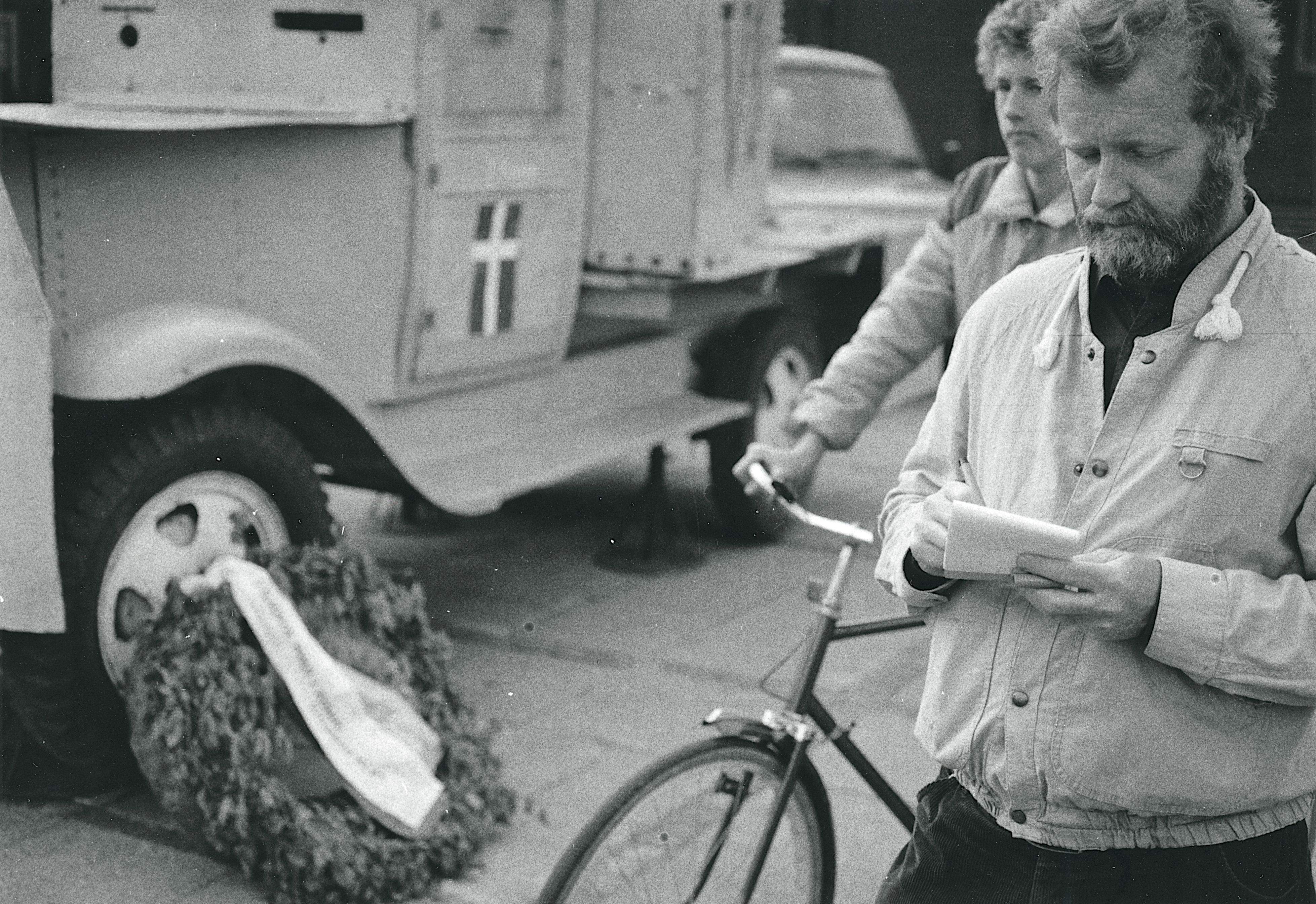 "Kulørte Klat's" kransenedlægning ved Frihedsmuseet d. 4. Maj 1984