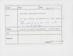 Maskingenkendt tekst fra fotokuvert: Barfods afskedsreception. En gæst hilser på Barfod