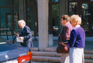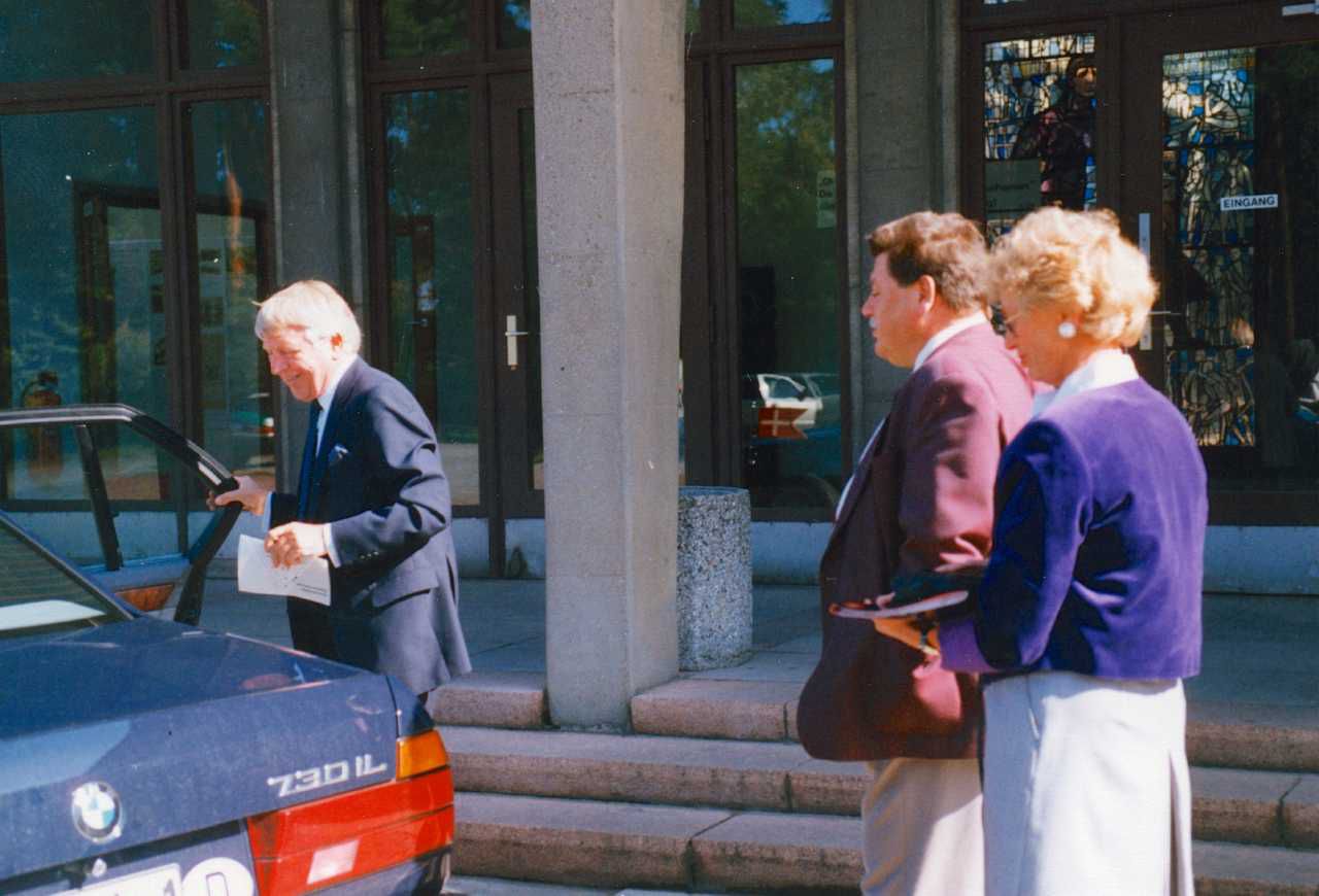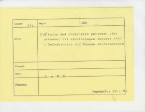 Maskingenkendt tekst fra fotokuvert: Prominente personer, der ankommer til udstillingen Oktober 1943 i Gedenkstätte und Museum Sachsenhausen
