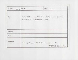 Maskingenkendt tekst fra fotokuvert: Udstillingen Oktober 1943 i det jødiske museum i Theresienstadt