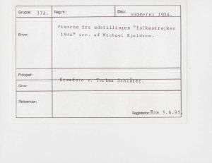 Maskingenkendt tekst fra fotokuvert: Planche fra udstilligen "Folkestrejken 1944". arr. af cand.mag. Michael Kjeldsen.