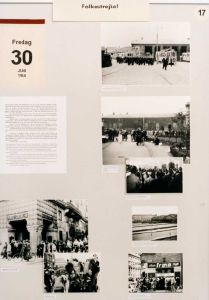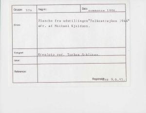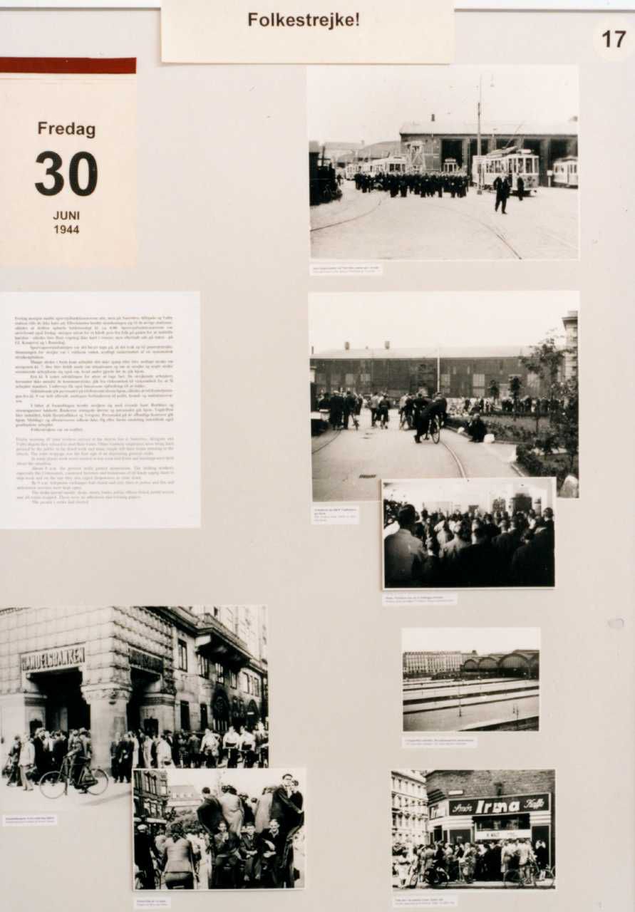 Maskingenkendt tekst fra fotokuvert: Planche fra udstilligen "Folkestrejken 1944". arr. af cand.mag. Michael Kjeldsen.