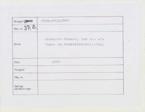Maskingenkendt tekst fra fotokuvert: Frøslev Museet, rum nr. 5. Vogn- og redsskabsudstiiling.