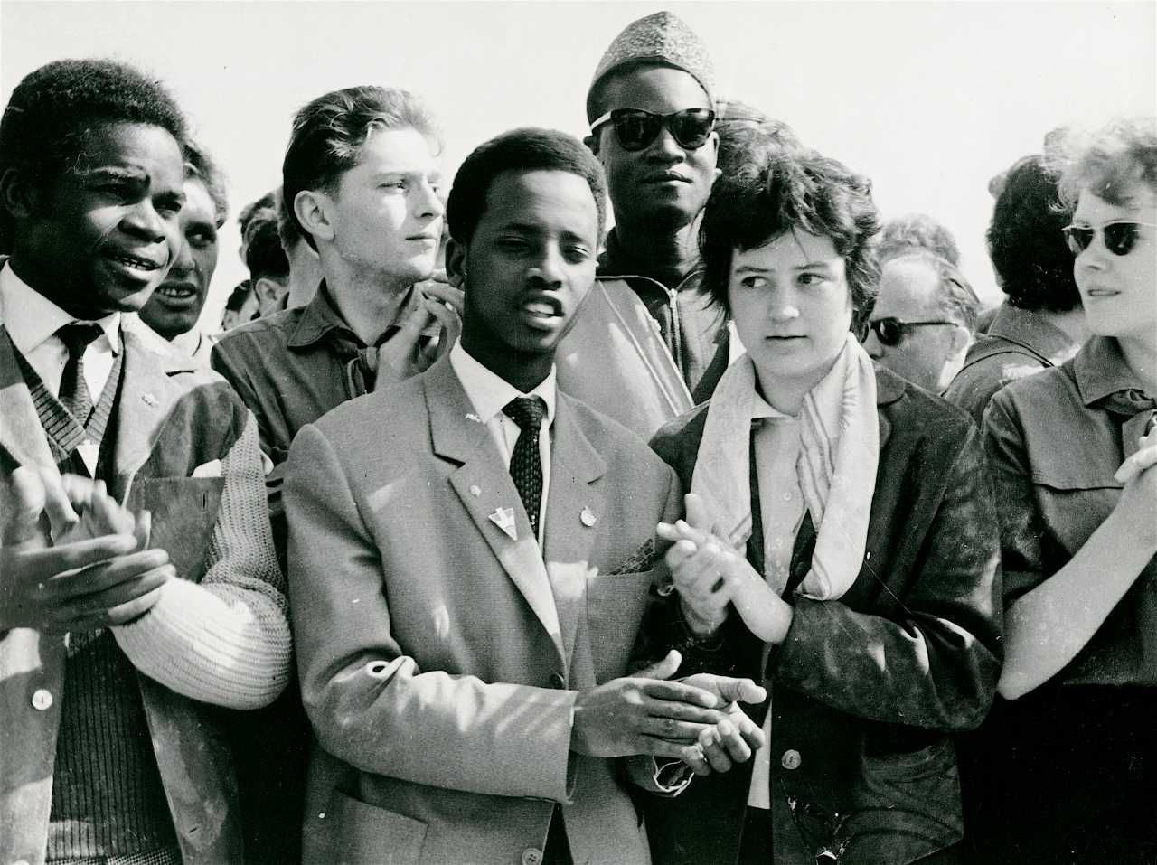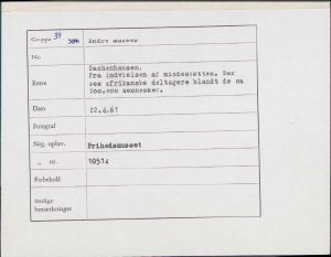 Maskingenkendt tekst fra fotokuvert: Sachenhausen. Fra indvielsen af mindestøtten. Her ses afrikanske deltagere blandt de ca 200.000 mennesker.
