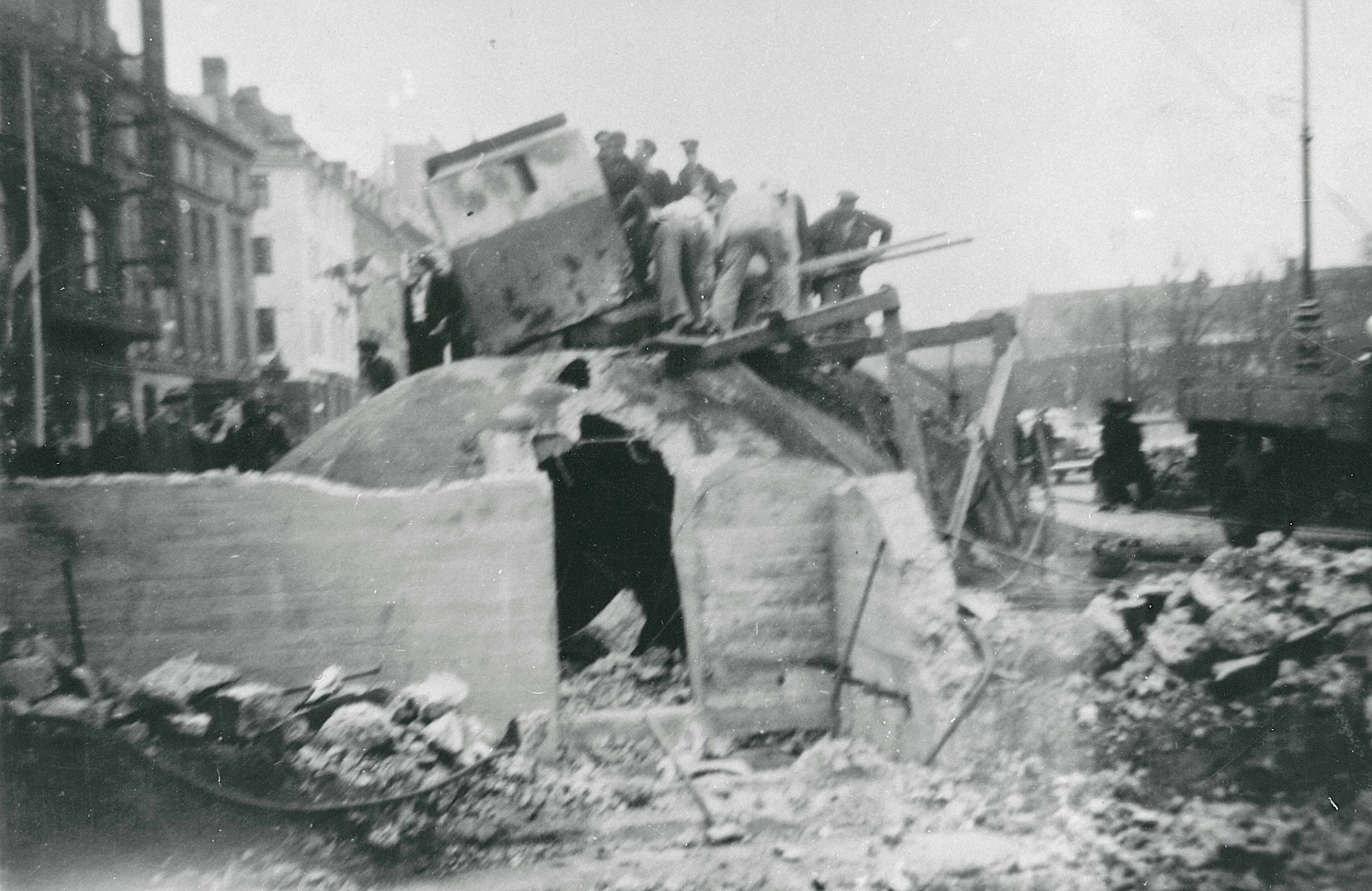 Maskingenkendt tekst fra fotokuvert: Beskyttelsesbunker på Kgs. Nytorv ved Magasin du Nord fjernes.