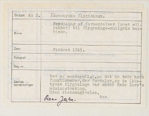 Maskingenkendt tekst fra fotokuvert: Fordeling af forsendelser (post ell. pakker) til flygtninge muligvis baltiske.