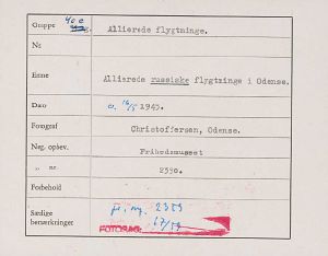 Maskingenkendt tekst fra fotokuvert: Allierede russiske flygtninge i Odense.