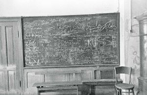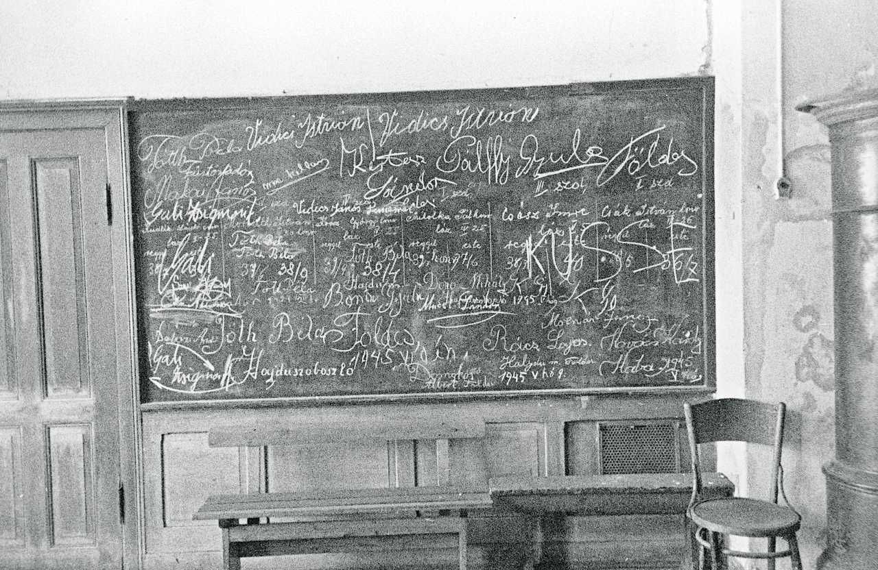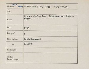Maskingenkendt tekst fra fotokuvert: Fra en skole, hvor Ungarere var interneret.