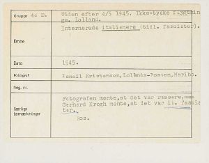 Maskingenkendt tekst fra fotokuvert: Internerede italienere (tidl. fasciste.)