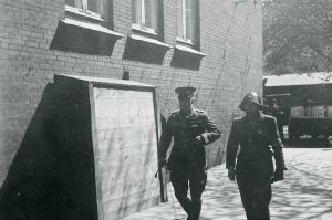 Maskingenkendt tekst fra fotokuvert: DanskIndustri-Synckat A/S set gennem togvindue før sabotagen