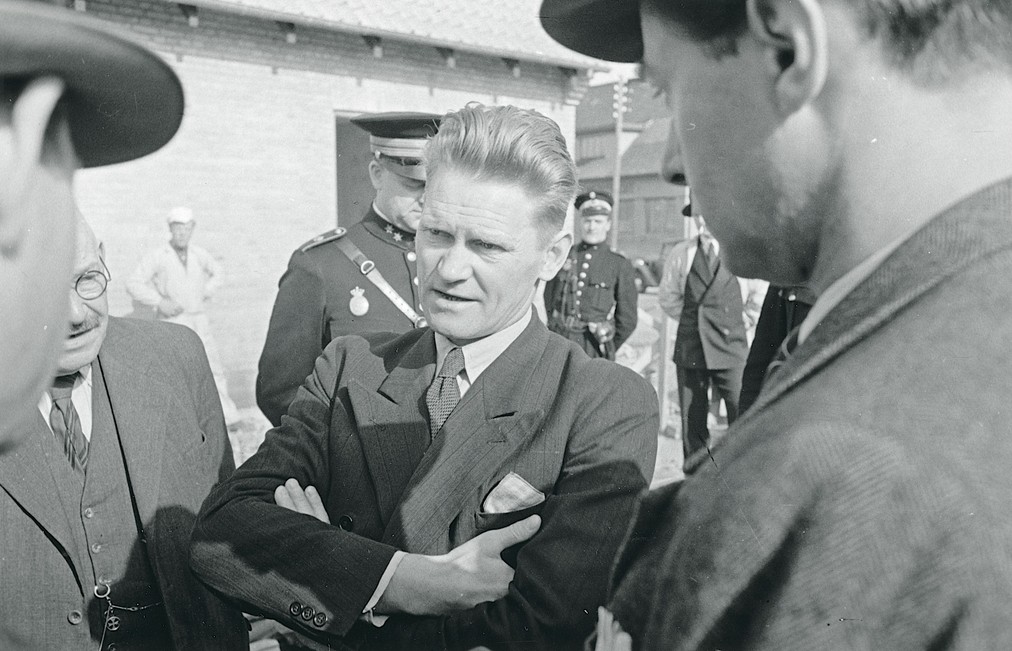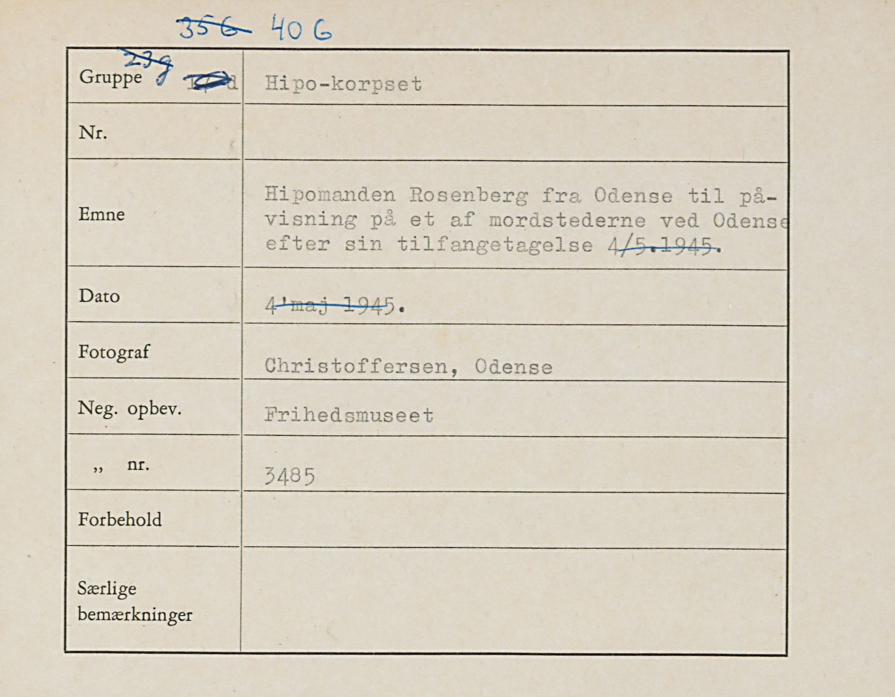 Maskingenkendt tekst fra fotokuvert: Hipomanden Rosenberg fra Odense til påvisning på et af mordstederne ved Odense efter sin tilfangetagelse