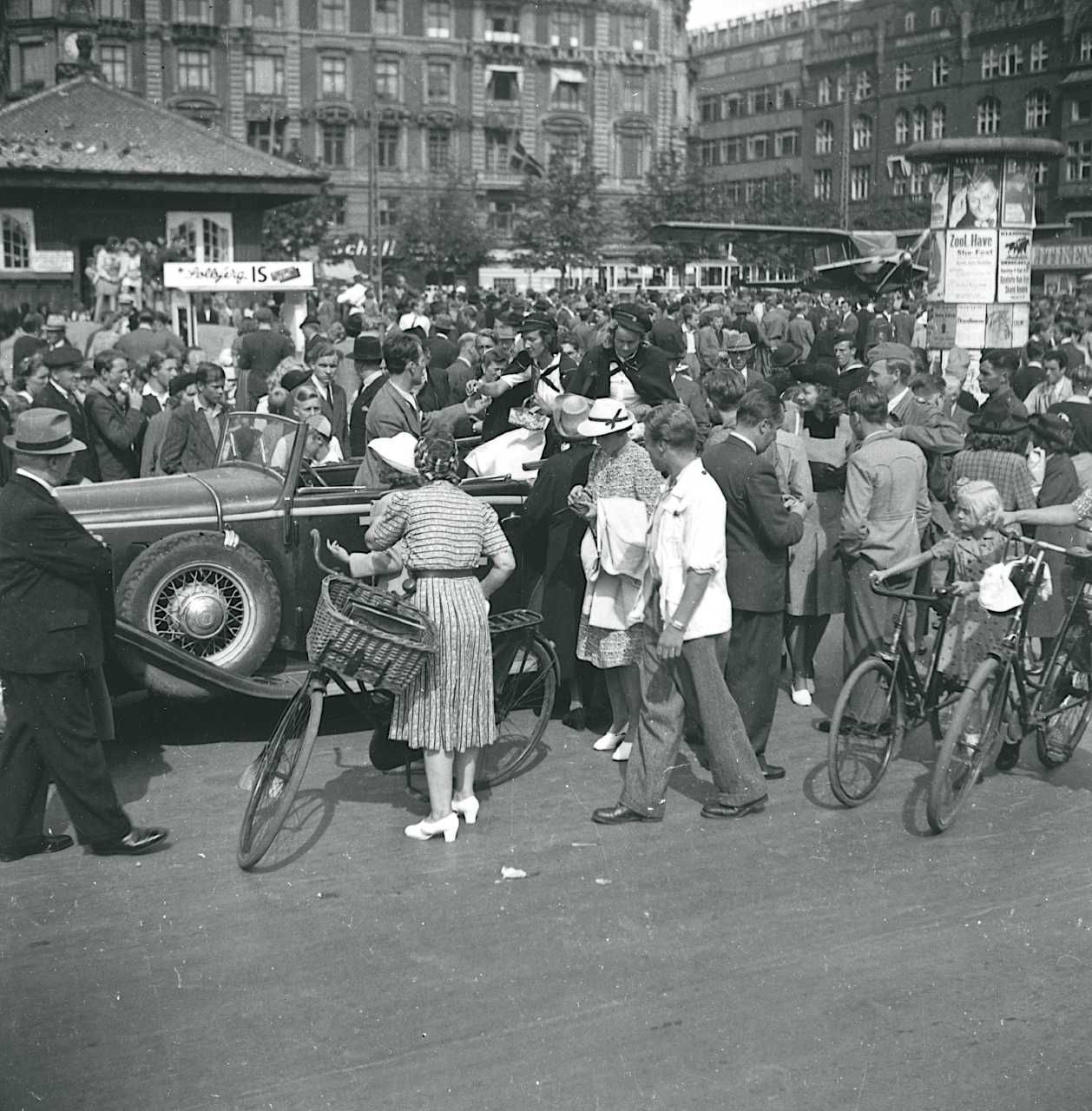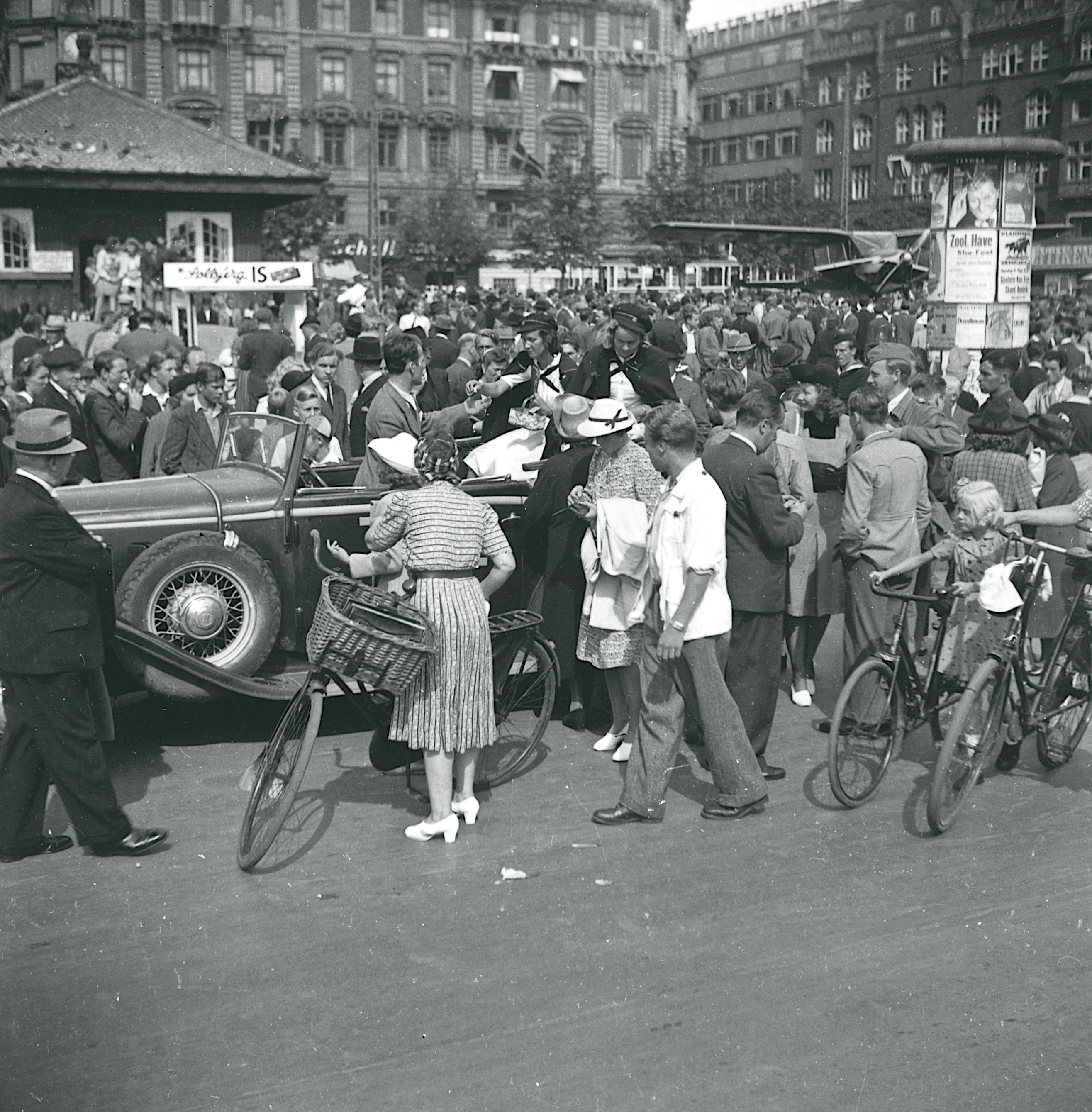 Maskingenkendt tekst fra fotokuvert: Rådhuspladsen. Salg af lodsedler til Frihedsfonden