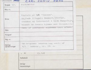 Carl Edvin Arvid Bostrøm. Kaptain på MS "Samson". Sejlede illegalt Danmark/Sverige, Stukket og interneret i tysk fangelejr, blandt de første hjemme med Bernadotte, men døde kort efter af pådragne sygdomme..