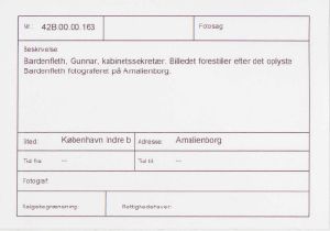 Gunnar Bardenfleth, kabinetssekretær. Billedet forestiller efter det oplyste Bardenfleth fotograferet på Amalienborg.