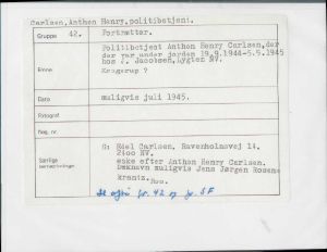 Politibetjent Anthon Henry Carlsen, der var under jorden 19.9. 1944 til 05.05 1945.