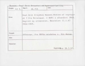 Poul Erik Krogshøj Hansen. Født 1924. Medlem af en gruppe på 7 fra Helsingør. I BOPA efteråret 1944. Angivet og arresteret. Henrettet 11.4.1945. .