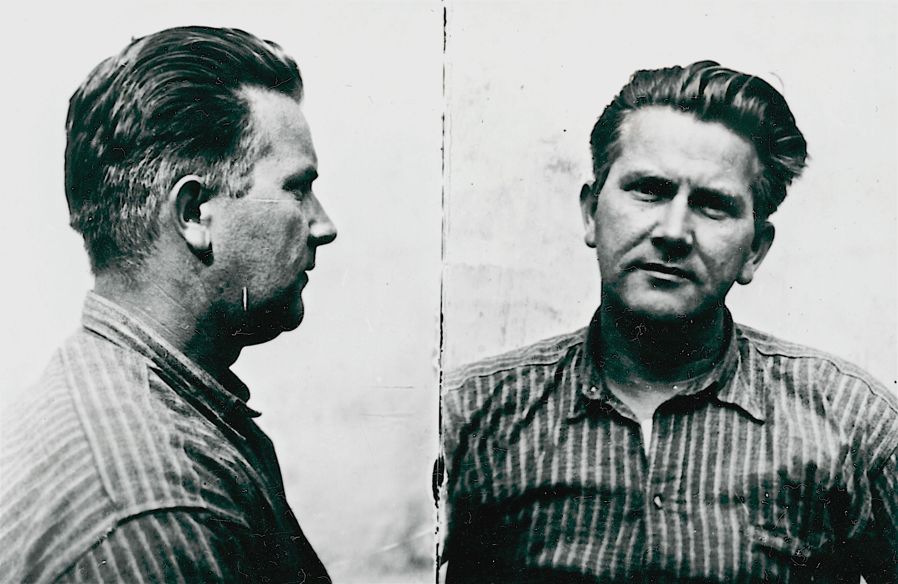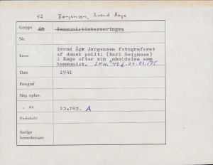 Svend Aage Jørgensen fotograferet af dansk politi i Køge efter sin anholdelse som kommunist.