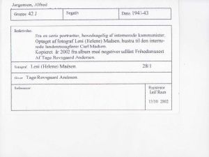 Foto optaget blandt hovedsagelig internerede kommunister. Optaget af fotograf Leni (Helene) Madsen, hustru til den internerede landsretssagfører Carl Madsen. Kopieret år 2002 fra album med negativer udlånt Frihedsmuseet af Tage Revsgaard Andersen.