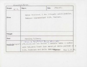 Børge Kronsted. Den illegale politiledelse. Dæknavn repræsentant Vilh. Nielsen. [Der er tvivl om indentifikationen. Se bagsideetiket.]